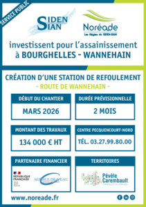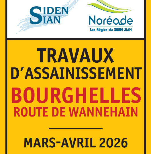 En mars/avril 2026, l’entreprise Noréade réalise des travaux d’assainissement route de Wannehain.